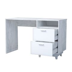 Стол Эго Ст-3 Стол письменный с 2мя ящ (бетон светлый/белый глянец) на ножках