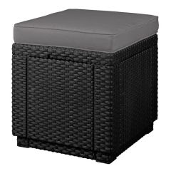 Cube with cushion - это оригинальное, простое по форме сиденье-тумба. Продукт может быть использован в качестве сиденья, столика или подставки для ног. Теплая, классическая гамма цветов и оригинальная, подобная ротанговой, фактура поверхности придется по вкусу даже самым требовательным пользователям. Изготовлена из стойкой к воздействию УФ-излучения и погодных условий пластмассы. Очень легко чистится.